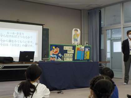 講師の方にきていただき,やってはいけないことや気をつけなければならないことをを学びました。