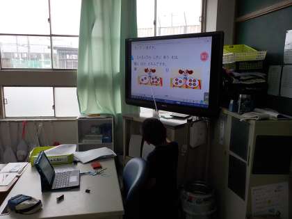 「ふえるといくつ」の問題をした後に,「ぜんぶでいくつ」の学習をしました。問題文から単位を見つけたり,たしざん言葉を見つけたりしました。