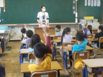 火曜日からの4日間,栄養教諭の先生が紙芝居をしにきてくれました。