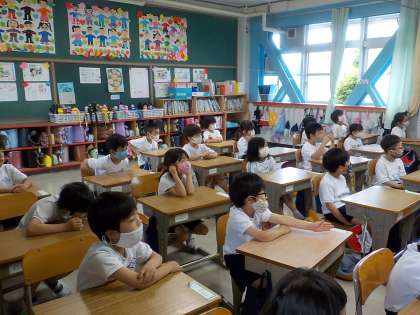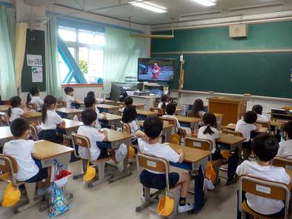 交通ルールのDVDを鑑賞しました。みなさん真剣に見ています。DVDを見終えた後は,気をつけること・守らなければならないことをみんなで確認しました。