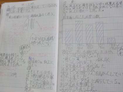 水害についての学習です。テレビも有効的に使い,進めています。