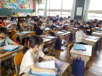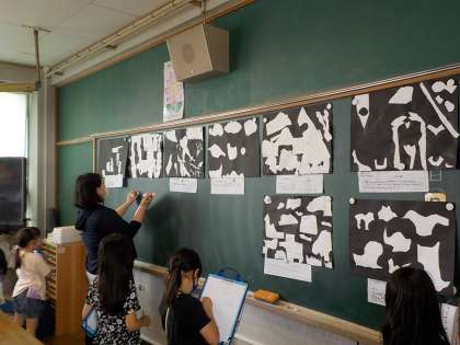 友だちの作品を見て何に見立てているのか確認し,感想を書きました。