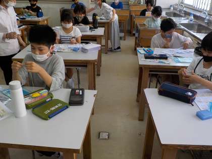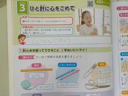 針の使い方を学習していました。ひと針に気持ちを込めて取り組んでいました。