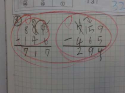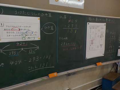 2年生までの経験をいかして,考えました。一けたずつ考えたらミスも少なくなりますね。