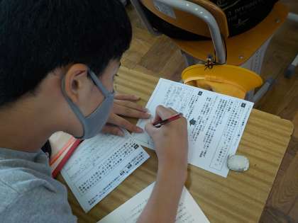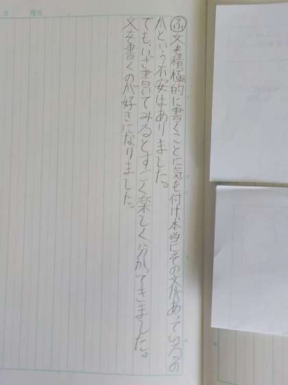 調べた文章をよりくわしく伝えるために,文章を付け加えたり,詳しく説明したりする文章を考える学習をしました。具体的に説明することの大切さや,理由づけすることの必要性について考えていました。とても難しい内容でしたが,ノートのfりかえりには「やっていくうちに意外と簡単だった」「具体的に書くとわかりやすい」「文を書くことが好きになった」という意見がみられました。