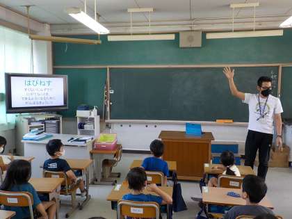 ハピネスの先生に来ていただいて,ハピネスではどんな学習をしているかなどの話をしてもらいました。「誰にでも苦手なことがあるよね。そういったところを学習するところだよ。」という話をしてもらいました。子どもたちも一生懸命話を聞いていました。