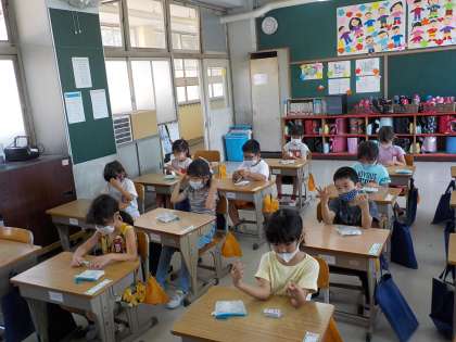 計算カードのひき算に取り組んでいます!授業を重ねるごとに,どんどん早く解けるようになっています!家でも取り組んでくださいね!