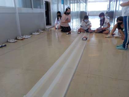「電気のはたらき」の学習のまとめとして,クラスのチャンピオンを決めるレース大会をしました。子どもたちは,回路を確認し,電池の向きやボディへの乗せ方,タイヤの調整などをしながらレースに参加しました。3組の優勝者はなんと車をバックで走らせていました。