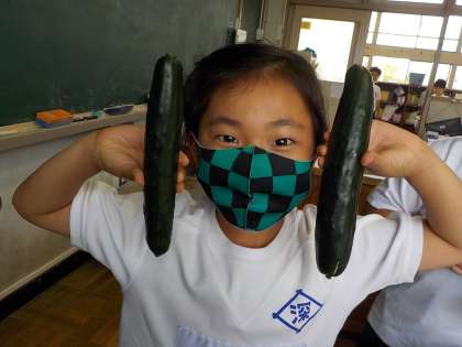 野菜ができました☆☆☆きゅうりがかなり大きくなってきました♪何人もきゅうりを収穫して持って帰っています♪他の野菜はまだです!!早く元気な野菜をもって帰りたいね♪
