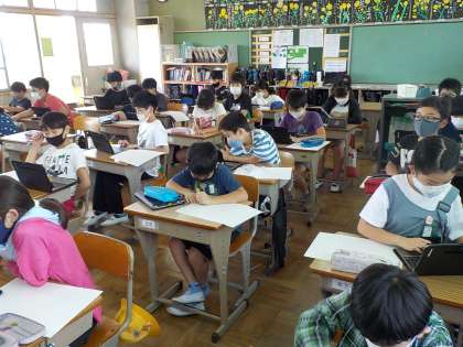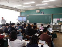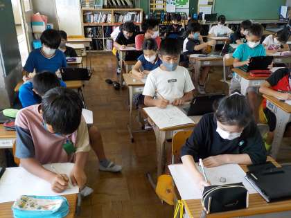 「笑顔あふれる豊かな町づくり」をテーマに絵を描きました。インターネットで調べ,それぞれがイメージした作品を作っていきました。