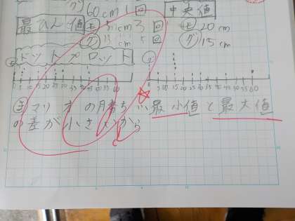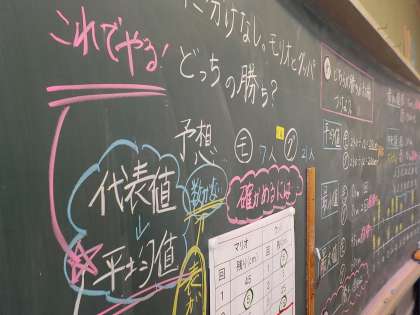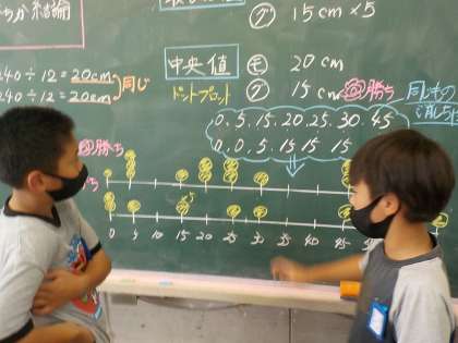 2つのデータを比べて,どちらが勝っているかを考えました。データの妥当性などについて批判的に考察し,自分の意見をまとめることができました。休み時間になっても熱心に自分の考えを伝え合う場面がみられました。