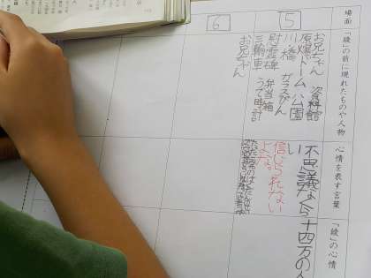 「たずねびと」の5,6の場面の登場人物の気持ちを表にまとめ発表しました。