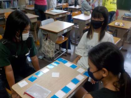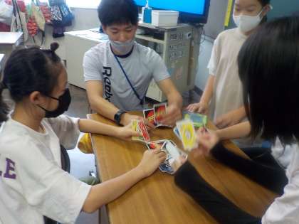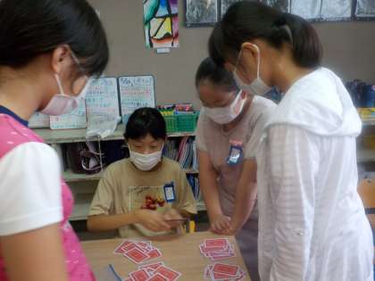 外で遊ぶことができないので,教室で友達とトランプやカードゲームをして遊んでいます。