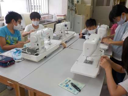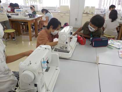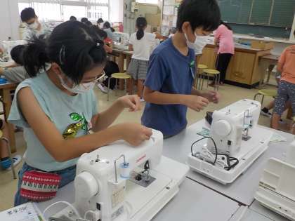 ミシンの実習が始まりました。今日は上糸をかける練習と下糸をセットするところまで学習しました。わかった子から,教えに回る姿が協力的でした。次からは,ナップサックを縫っていきます。