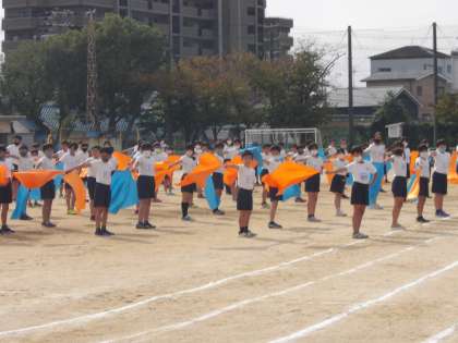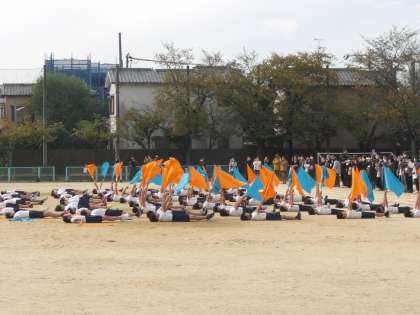 ダイナミックには旗を振って音を鳴らし,みんなでシンクロしたり,少しずつタイミングずらして,ウェーブをしたりととてもかっこよかったですね。