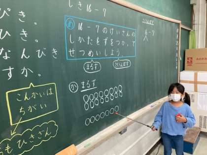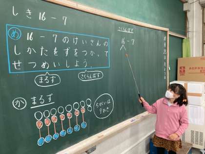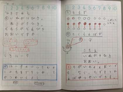 繰り下がりのひき算の様子です。2つの図も使いこなせるようになっています!ノートも綺麗ですね♪
