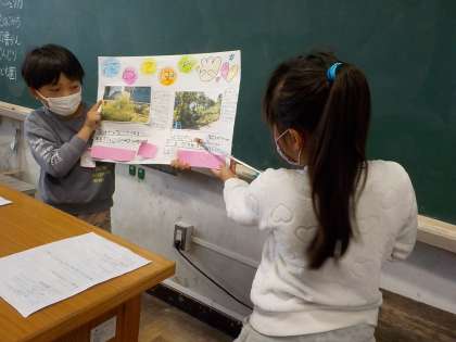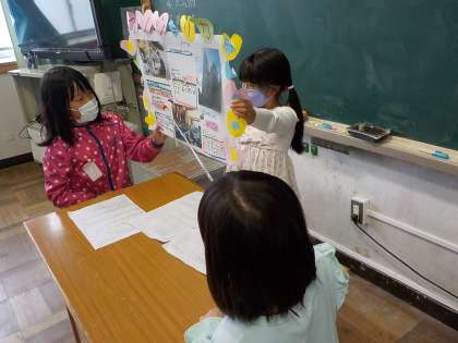 今日は町探検の発表会をしました☆みんな一生懸命練習したので,大きな声で自信をもって言えていました!各チームクイズもあって,とても楽しい発表会になりました♪聞いている人も聴くを意識して発表を聞き,感想もしっかり言えることができました。
