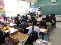 学習の後はクイズも行い,自分はどんな言葉を書いたのかをお互いに出し合っています。