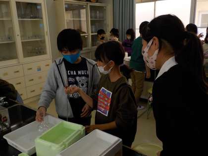 初めて理科室での実験だったので、