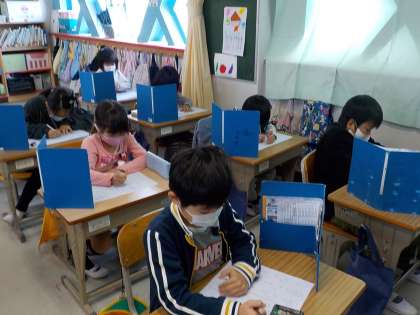 カタカナと漢字のまとめテストをしました。みなさん集中して取り組んでいます。