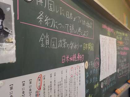 日本が結んだ2つの条約について考えました。どんな内容が書かれているのかをじっくり調べることで,日本とアメリカの立場を考えることができました。