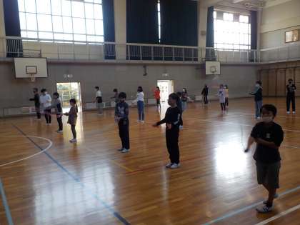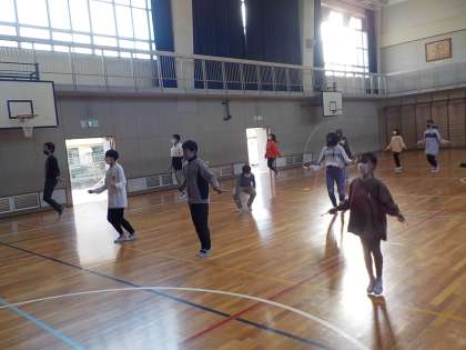3学期実施予定のなわとび週間に向けて,練習しています。みんなの前で見本になってくれるはずです!さすが高学年です!!