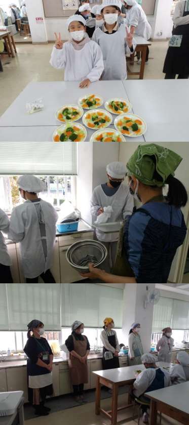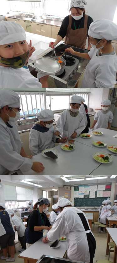 「ゆで野菜サラダ」を作りました。児童のみなさんは,安全と衛生面に気をつけて取り組んでいました。盛り付けも上手にできましたね。