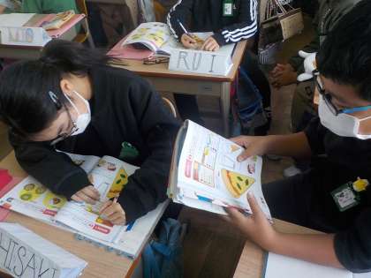 ピザ屋になったつもりで,自分のお気に入りのピザを注文する練習をしました。うまくジェスチャーを取り入れながら伝えている姿も見られました。