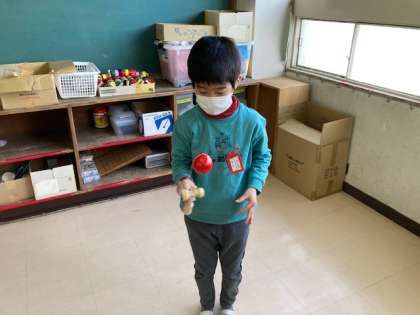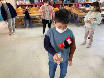 昔遊びで,けん玉をしました。楽しそうに取り組んでいました!