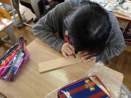 卒業制作ではオルゴール作りをしています。みんな丁寧に取り組んでいますね。