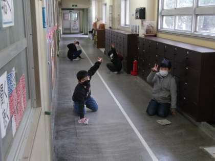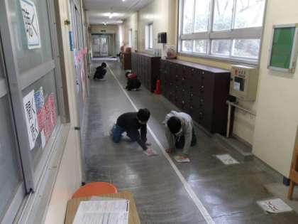 毎日校長室前と職員室前をきれいにしてくれている5年生の4人です。