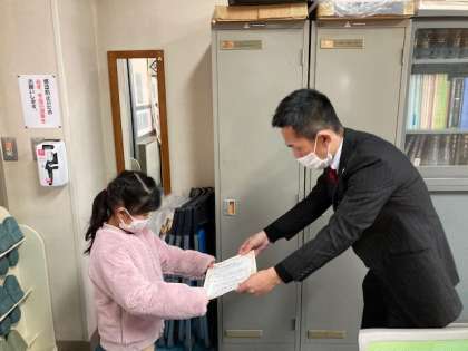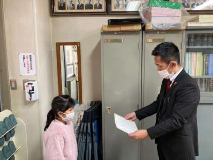 縄跳びカードを,全てクリアした人の表彰を校長室でしました!これからも頑張ってくださいね!おめでとう♪