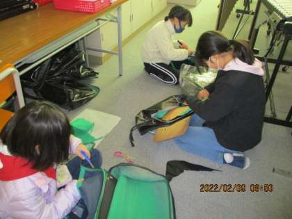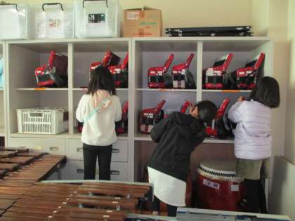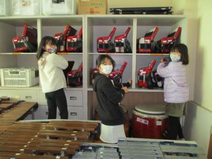 楽器に貼っていた使用する人の名前テープをはがしたり,