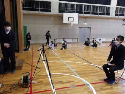本日のTeams朝礼は体育館で行いました。「地域の方へのお礼の会」を体育館で実施しますので,そのテストも兼ねての実施となりました。