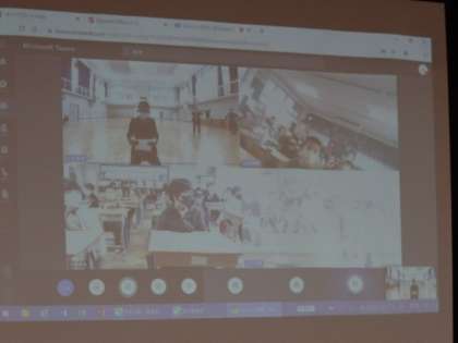 各学年とオンラインでつなぎ,校長先生からクイズの出題があり,映像・音声の不調が多少ありましたが,みんなにしっかりと答えてくれました。