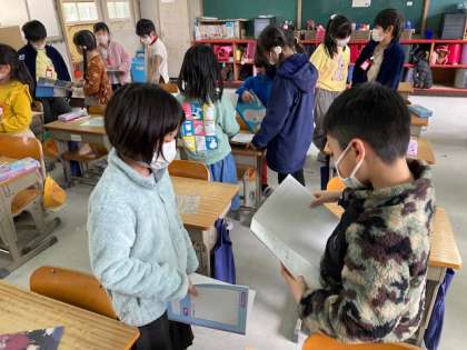 式→5+3・・・?・・・ん?自分の書いた図を使って,話し合っています。