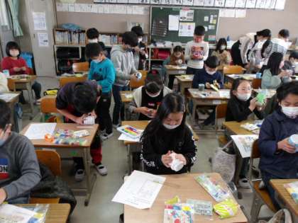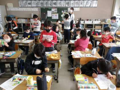 ペン立てに紙粘土で飾り付けしていきます。丁寧に設計図を書いたので,どこまで設計図通りにできるのか楽しみです。