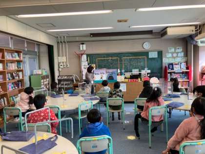 本を返して借りた後,図書司書さんに,読み聞かせをしてもらいました。2冊の本ともすごくおもしろく,次を予想したり,笑ったりしながら聞いていました。