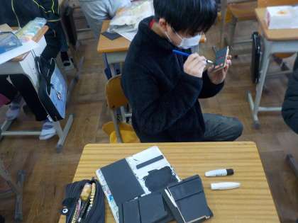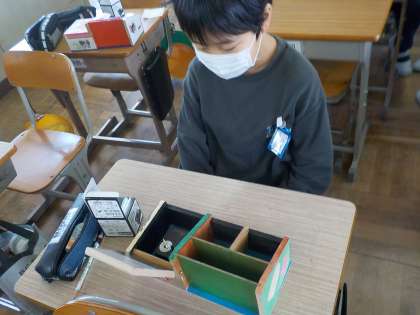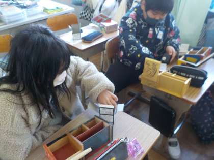 少し時間はかかりましたが,ペン立てを完成させて自分が選んだオルゴールを聞いていました。