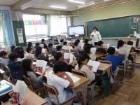 野菜の観察をしました。苗を植えたときと比べて,どんな風に変わってきたかを観察し,絵と言葉であわらしました。見てわかる変化だけでなく,触ったり,においを嗅いだりして,観察しました。