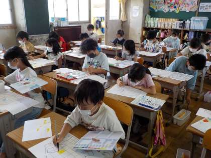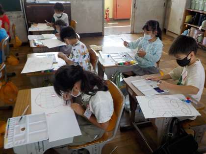 今日の図工は,ぞうのエルマーに絵の具で色をぬりました。