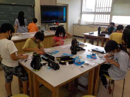 様々な縫い方にボタンづけなど,針の基礎的な使い方を学んでいます。