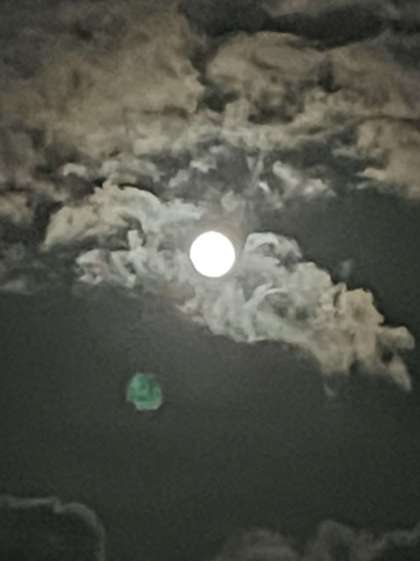 満月をバックに、キャンプファイヤー盛り上がってます。