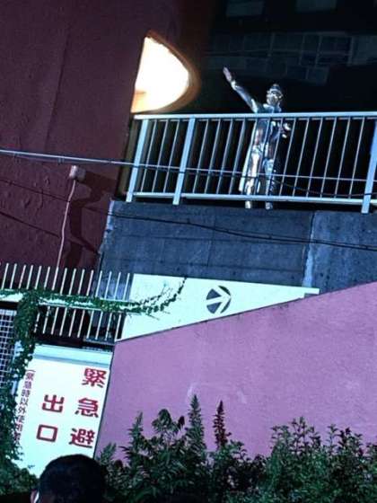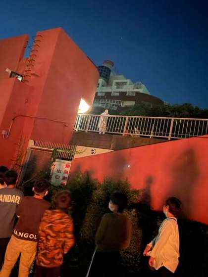 キャンプファイヤーが終わりにさしかかった頃、上の方から誰かが登場しました。