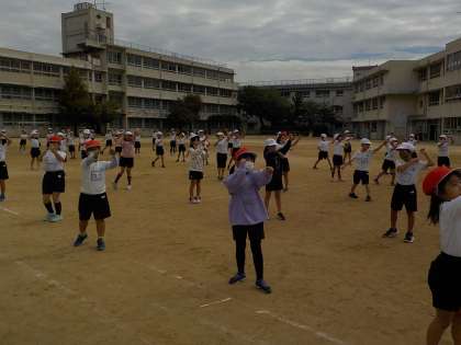 今日は,初めて運動場でダンス練習をしました。広々と踊れて子どもたちの動きもいい感じ♪