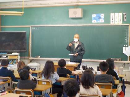 本日,地域の方をゲストティーチャーに迎え,昔の深井小学校や地域についてお話をしていただきました。自分たちが育つ学校や地域の今と昔の違いについて,みんな熱心に話を聞いたり,メモしたりしていました。