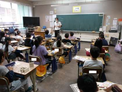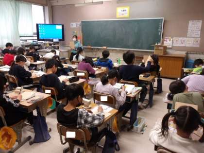 その中で3組の児童が,できあがった作品を校長先生にみせてくれました。