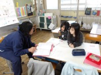 「サークルシュートゲーム」のルールを少し変化させたゲームをしました。攻める側,守る側に分かれ,ゲームを楽しんでいます。教室に戻ってからは,もっとゲームがおもしろくなる方法を考えました。次回,実践してみましょう!
