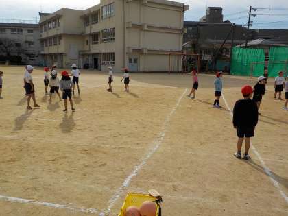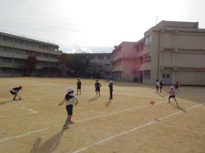 今日もサークルシュートゲームをしました。ボール投げの練習もしました。だんだんとボールを投げたり,キャッチすることが上手になってきています。