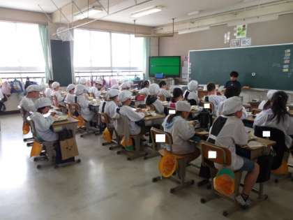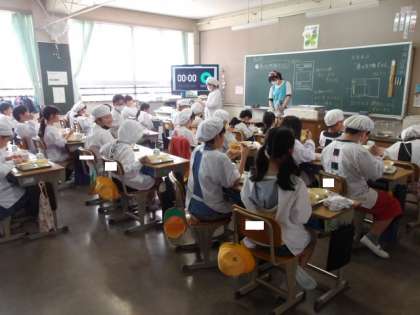 落ち着いて給食を食べています。